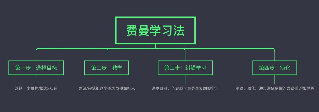 第4步:简化。 把这些遇到问题的地方,重新梳理理解,尽可能了解更多背景和相关知识,再用尽可能简化的方式重新表达,设法看穿本质。然后,返回第2步。